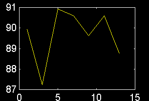 K-Nearest-Neighbor classification, K from 1 to 13, 5 iterations.