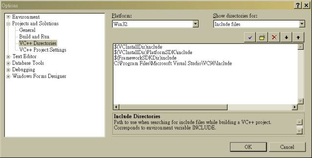 (Steps 3 and 4) to reconfigure Visual C++ 2005 Express, so it can find the new include