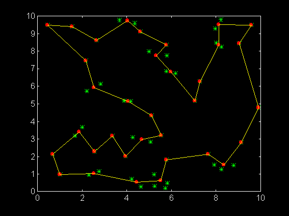 "Traveling salesperson problem" is a typical problem for searching the optimal path to reach each desired point . In some cases , we must not be passing through each point exactly , instead of being close to some accepted distance . This is a new trial to find a optimal path to make each point be in a accepted distance.