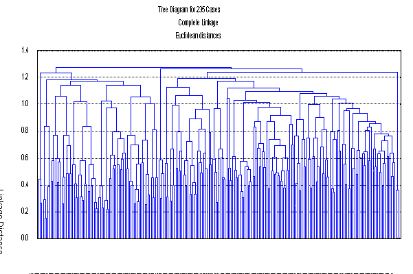 Processed by SVD method, 235 documents, 100 factors, 3 categories (Economy, Enterntainment, Sport). Choose observations to maximize initial inter-category distances. Solution was obtained after 3 iterations.
